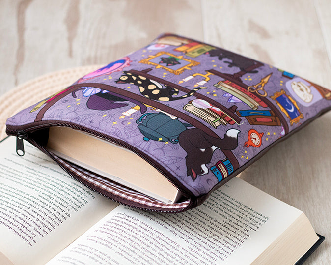 Funda literaria tamaño L plus (24x30cm aprox) con cierre de cremallera, por un lado con una ilustración exclusiva y por el otro con polipiel, relleno acolchado. Todas las fundas están hechas a mano, por lo que puede haber ligeras diferencias entre una y otra (producto exclusivo de la caja, no se podrá comprar suelta).